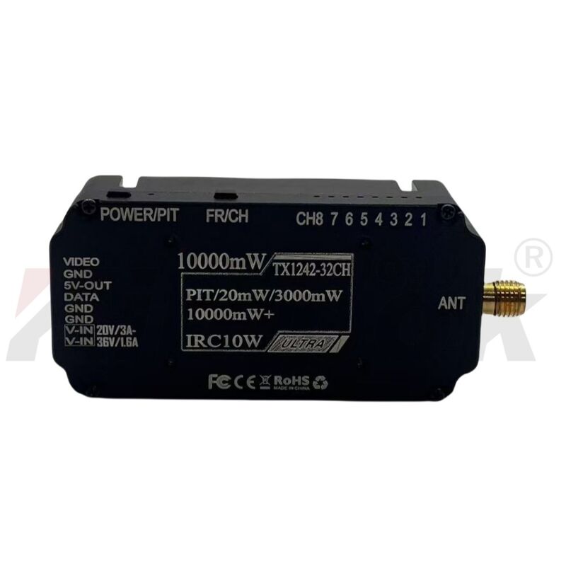 O transmissor de transmissão de vídeo sem fio de 8 canais 2.5G 10W para drones opera na banda de frequência 2.5G com uma saída de alta potência de 10W, fornecendo fortes capacidades de transmissão de sinal que superam as limitações de distância para obter transmissão de vídeo estável em distâncias ultra-longas.